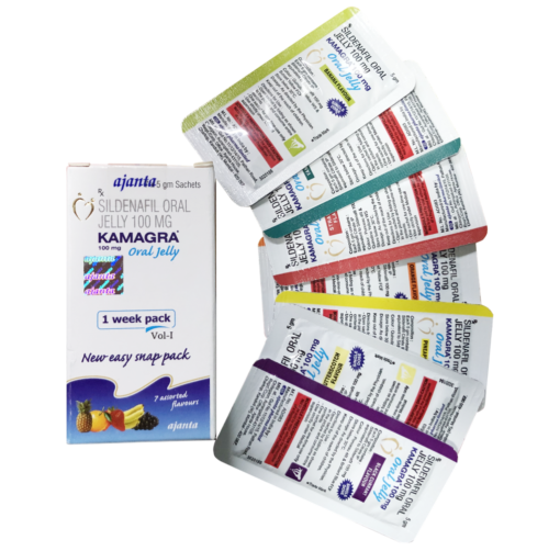 Kamagra Oral Jelly is a popular and effective treatment for erectile dysfunction. Unlike hard-to-swallow tablets, Kamagra Jelly sachets can be simply squeezed out onto a spoon and swallowed easily. Kamagra Oral Jelly is manufactured clinically in clean room facilities by Ajanta Pharma. Kamagra Jelly is supplied in a range of flavours and quantities may include mint, chocolate, banana, orange, mango, strawberry, pineapple and vanilla. A selection of mixed flavours will be sent in every order. Unfortunately, we are unable to send specific flavours. Kamagra Jelly is quickly absorbed into the body and patients report faster response times from 20 mins. Kamagra Oral Jelly has an effective treatment time of 4 – 6 hours but many GPs report longer times. The active ingredient of Kamagra Oral Jelly is Sildenafil Citrate. It belongs to the PDE-5 family of vasodilators. These drugs work by dilating the blood vessels in the body; particularly around the genital area. This in turn, allows stronger blood flow to enable an erection to take place. Kamagra Jelly is not an aphrodisiac and stimulation will be required to develop an erection. How to take this medicine To get the best from your treament, please read the following carefully. The safe indicated dose of Kamagra within a 24 hour period is 100mg This medicine will become effective from 20 minutes after taking it